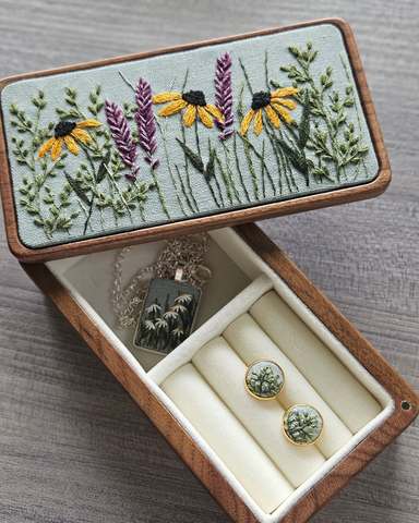 Petite boîte à bijoux de rangement en bois emballage voyage anneau boucle d'oreille pendentif boîte à bijoux motif champignon pour broderie à la main