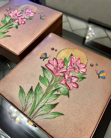 Scatola Portagioie in Pelle Dipinta a Mano, Portagioie Vintage di Lusso in Pelle Ricamata, Scatole per Profumi e Orologi